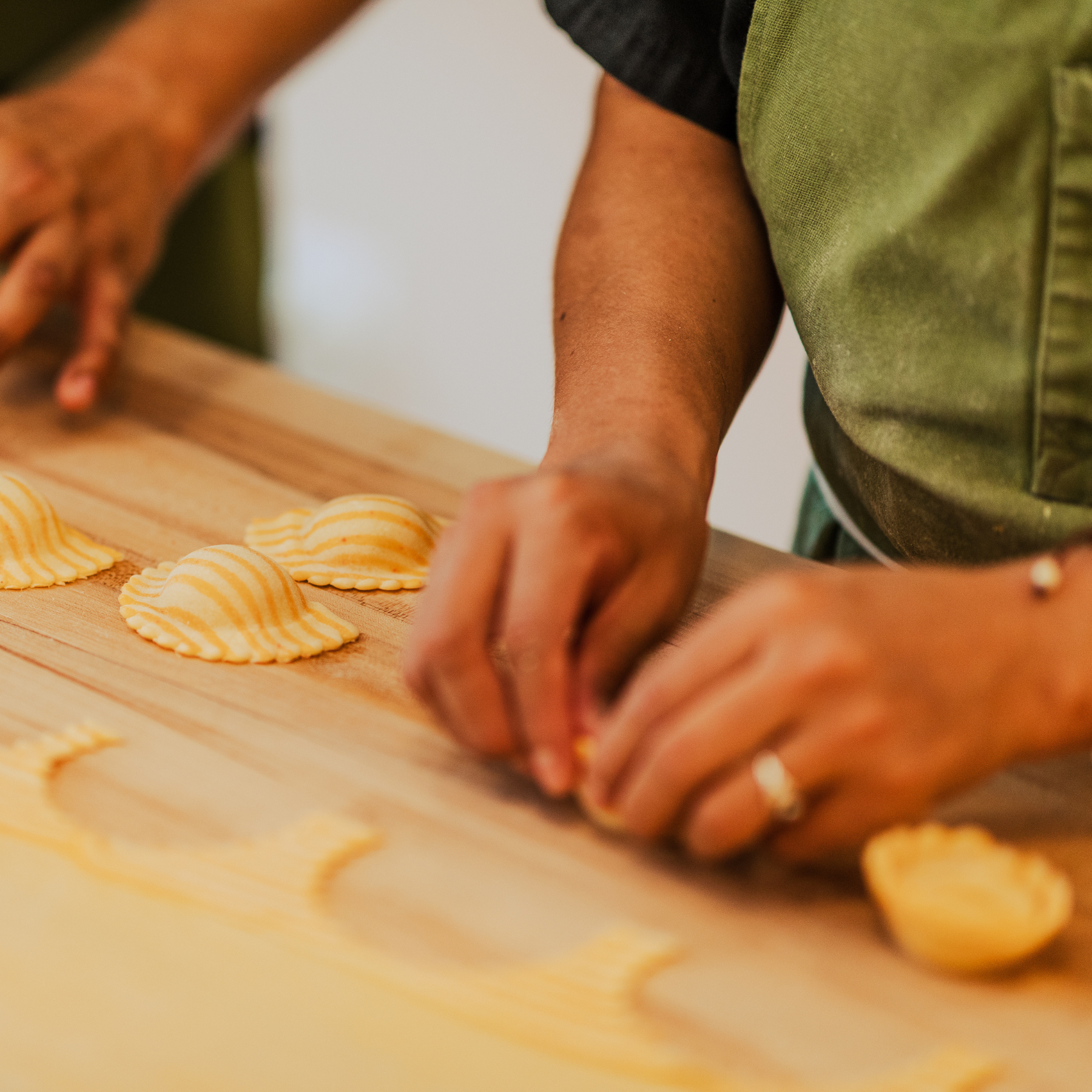 Our pastaio will teach you how to make your own fresh pasta dough, create pasta shapes and design seasonal sauces. Each class will include an introduction to handmade pasta making, including the tools and equipment needed, basic ingredients required and general cooking techniques to feel like a chef in your home kitchen.