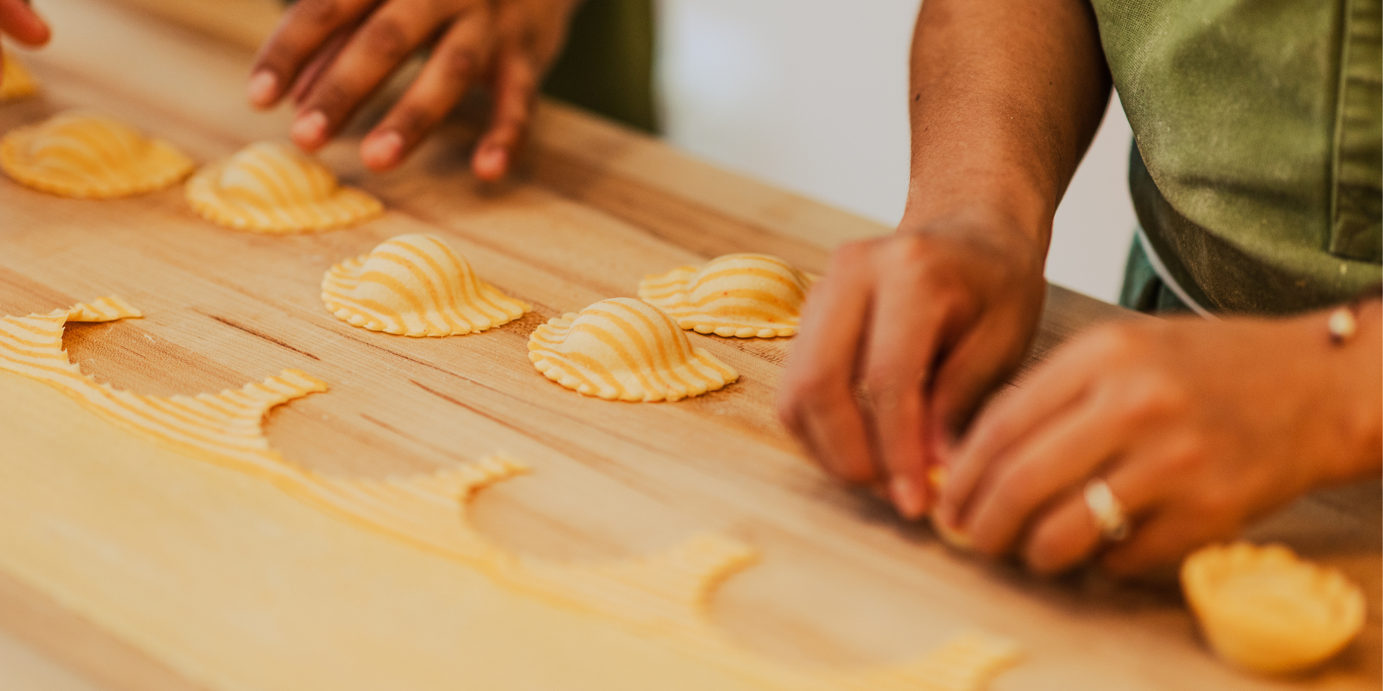 You and a teammate will work together to create a handmade, filled pasta. The class will include an educational overview and hands-on creation of dough making, including the type of flour to use, proper texture, rolling, shaping, filling, and cutting.