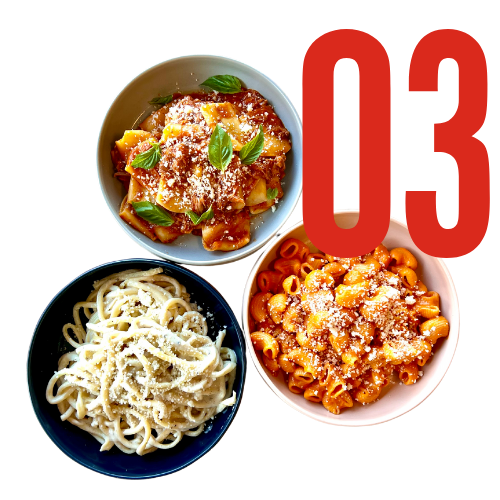 Plate your pasta, adding enhancements as desired. Check out our recommendations below.